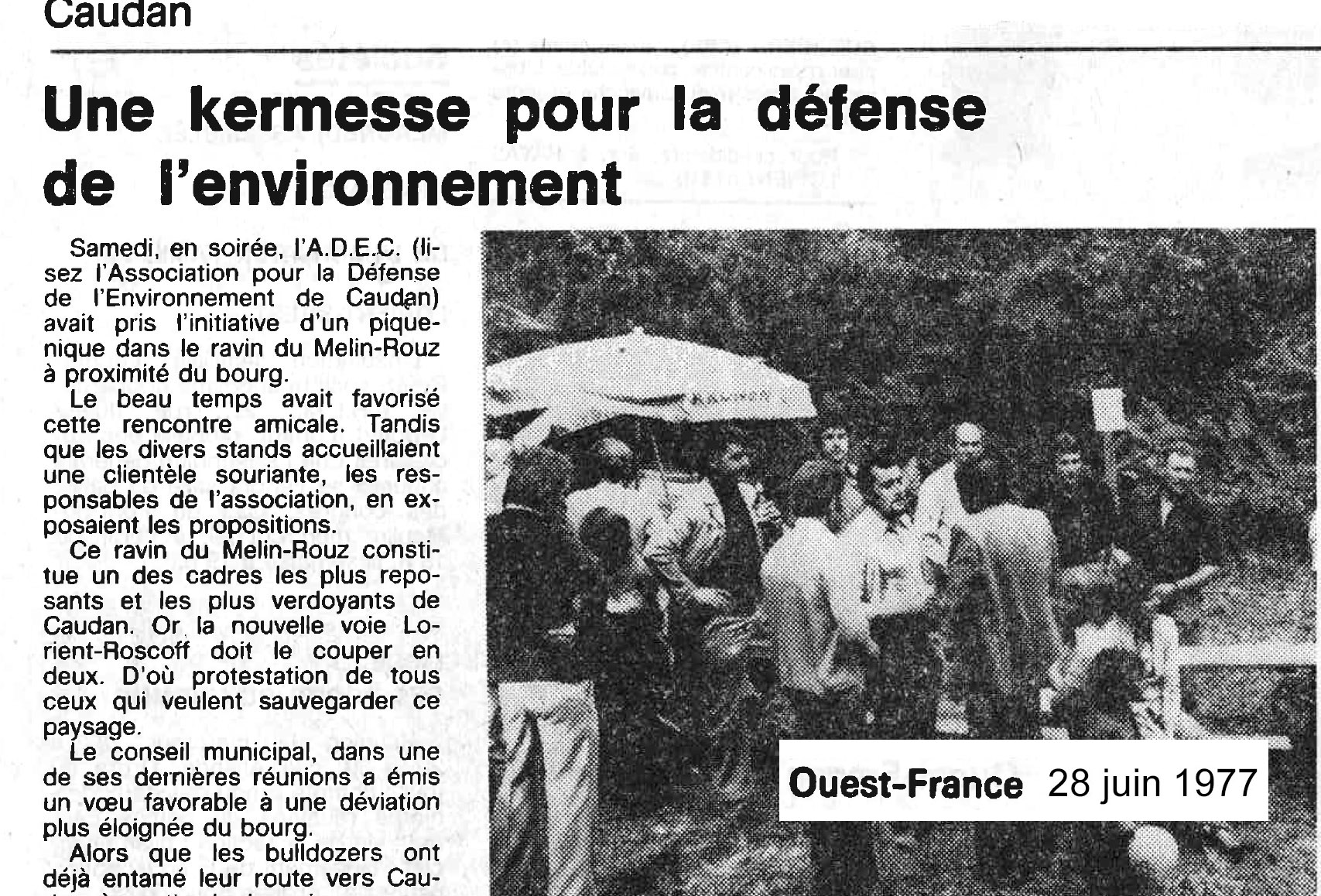 Le 13 mars 1976, les habitants de Kerourio créent l’ « Association pour la défense de l’environnement à Caudan. » L’association a pour objet de « lutter contre l’implantation sur le territoire de la commune de Caudan de tout établissement nuisant à la qualité de la vie dans ladite commune »